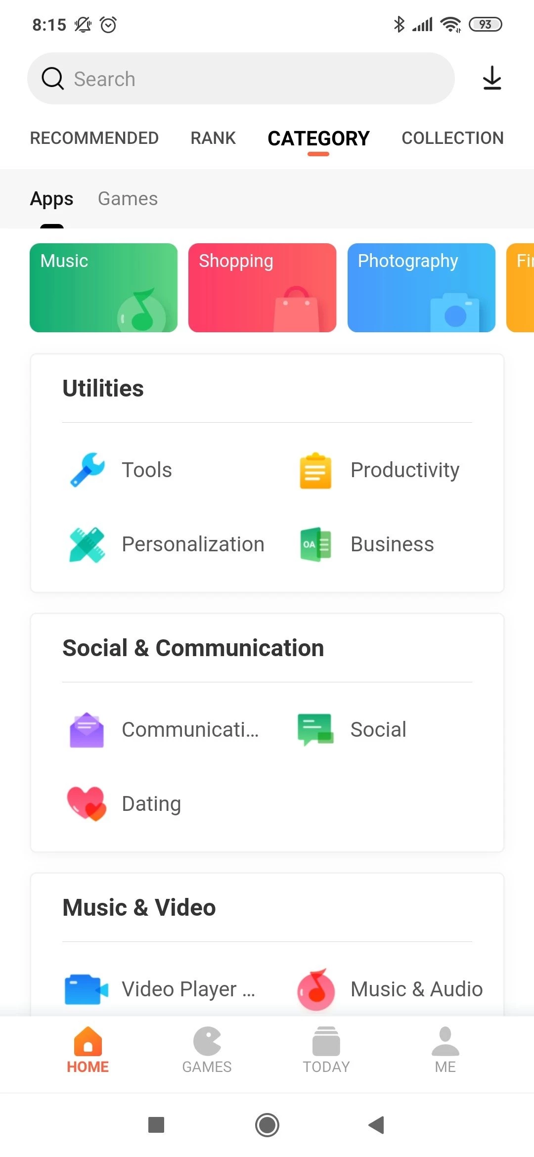 Tras completar la instalación, abre la aplicación e inicia sesión en tu cuenta. La página principal, con una interfaz elegante, te resultará atractiva y está categorizada como comunicación, fotografía, videojuegos, etc. Cada categoría incluye una gran cantidad de aplicaciones organizadas según su popularidad.